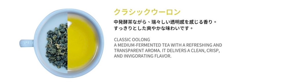 甘さを含んだ芳醇な香りで、ウーロン茶らしいキリリとした口当たりの中に、深く華やかな味わいがあります。後味は柔らかでハチミツのような甘みが楽しめます。香料・甘味料などは使っておりません。口の中で広がる柔和な香りをお楽しみいただきたい一品です。熱湯で淹れた後に冷まして飲むと、味が丸くなり甘味へと変化します。